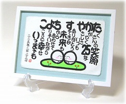やさしい文字や絵柄を、深みのある茶色の額で囲むことにより、筆名詩全体が引き締められているかのようです。
